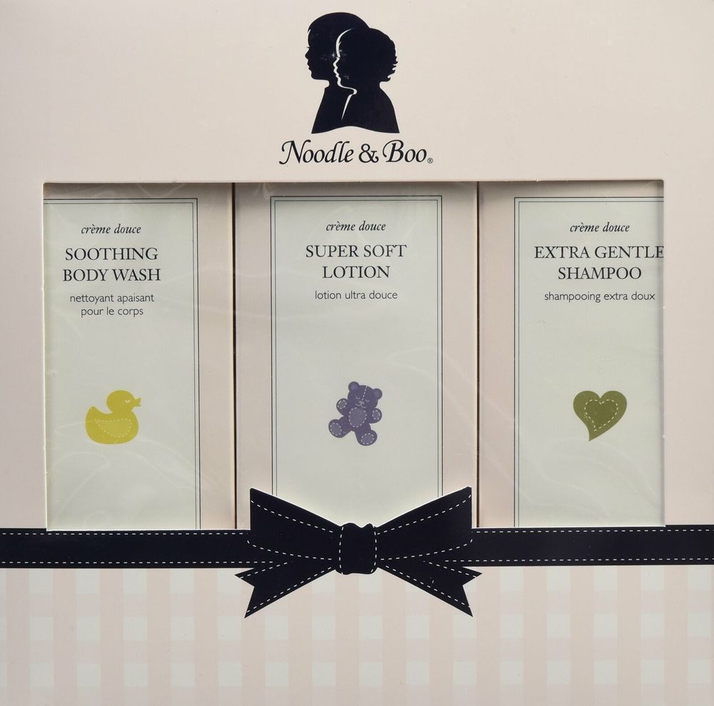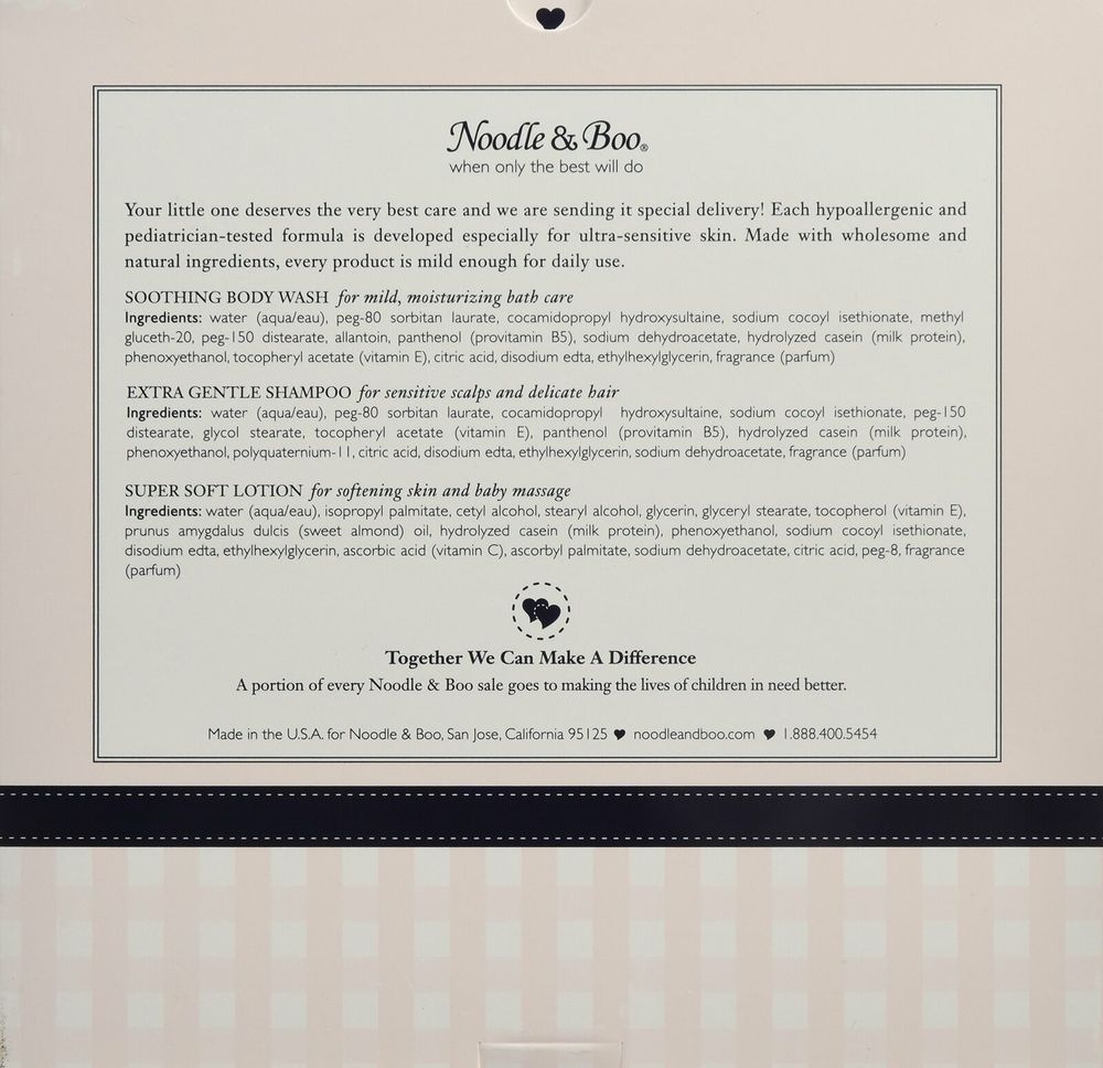 - Set includes 8 ounces of Extra Gentle Shampoo, Soothing Body Wash and Super Soft Lotion.