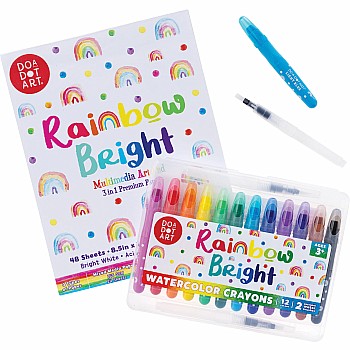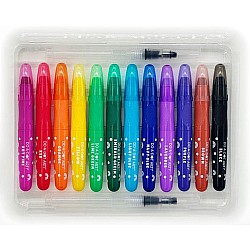 Bring a splash of color to craft time! This delightful set of 12 vibrant watercolor crayons and two refillable water brushes inspires open-ended creativity for kids. Quick to set up, simple to use, and effortless to clean, these twist-up crayons are a go-to for encouraging artistic exploration without the mess. Everything packs neatly inside the snap-close case for watercolor wonders on the go! Pair with Do-A-Dot Art Rainbow Bright Multimedia Art Pad for a gift that wows.